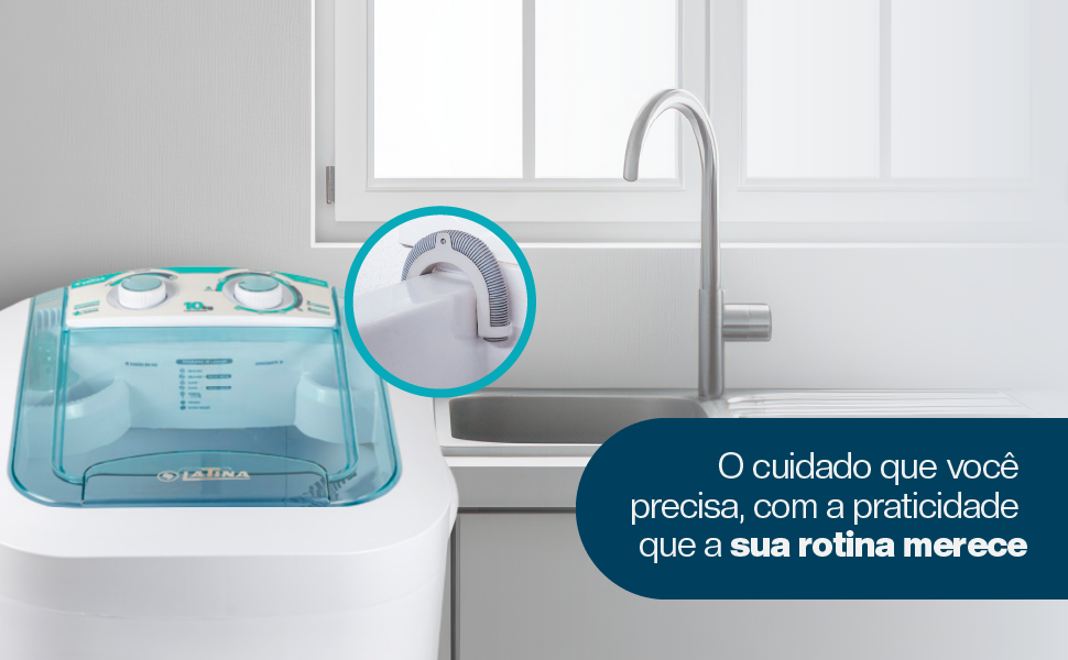 Com sua super turbina lava melhor e protege as roupas. Possui 2 dispensers sendo um para sabão e outro para amaciante, tem ainda Maxifiltro de fiapos, pés reguláveis e alça para transporte. O grande diferencial dessa lavadora é que a saída de água é automática por bomba eletrônica, ou seja, a mangueira para saída de água pode ser posicionada direto no tanque, ao contrario dos outros produtos disponíveis no mercado em que a mangueira deve ser posicionada no ralo e a saída da água é por gravidade.