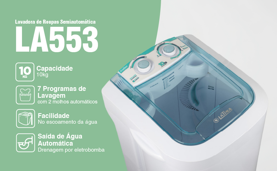 A LA553 é a lavadora semiautomática mais completa do mercado.