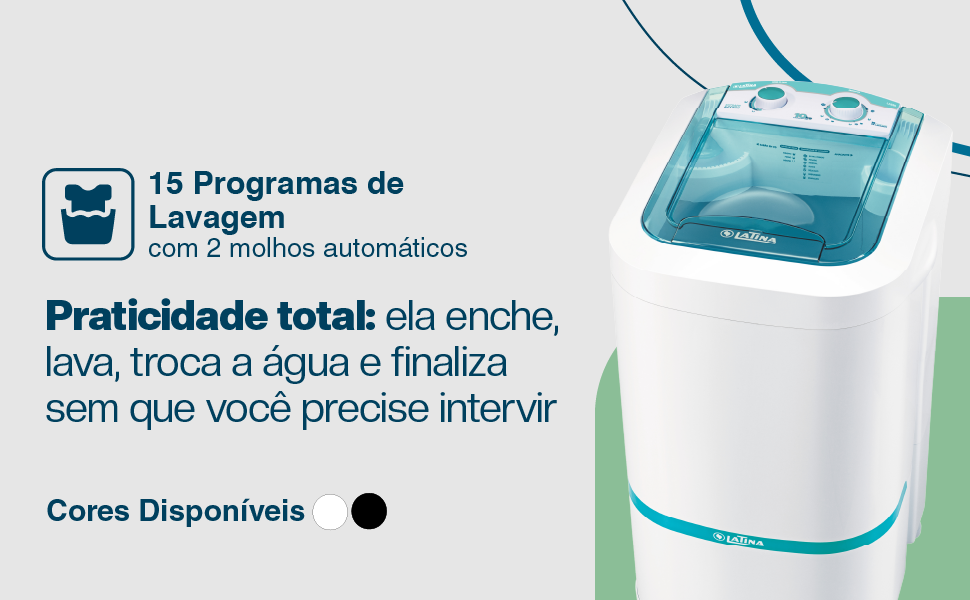 • 15 programas de lavagem com 2 molhos e 2 enxágues automáticos