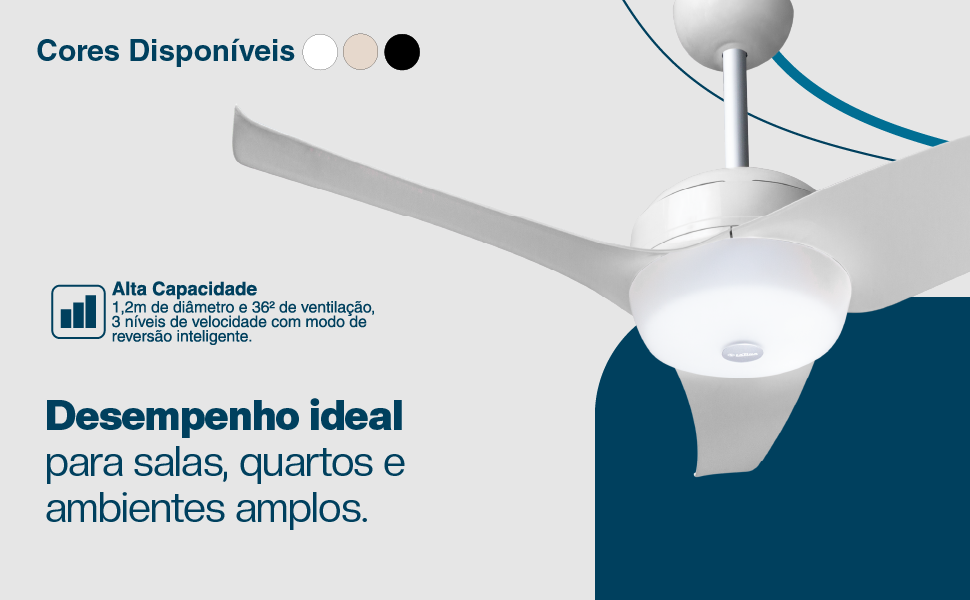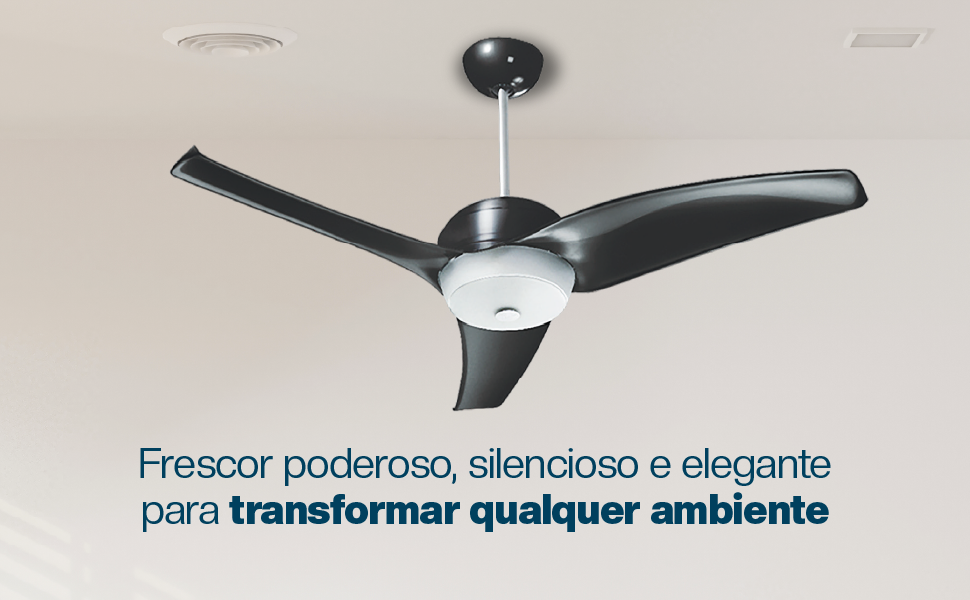 Esse ventilador é realmente sensacional. Sua aerodinâmica foi desenvolvida em parceria com a USP – UNIVERSIDADE DE SÃO PAULO – e as pás são produzidas a partir de materiais muito resistentes, que possibilitam uma durabilidade fantástica.